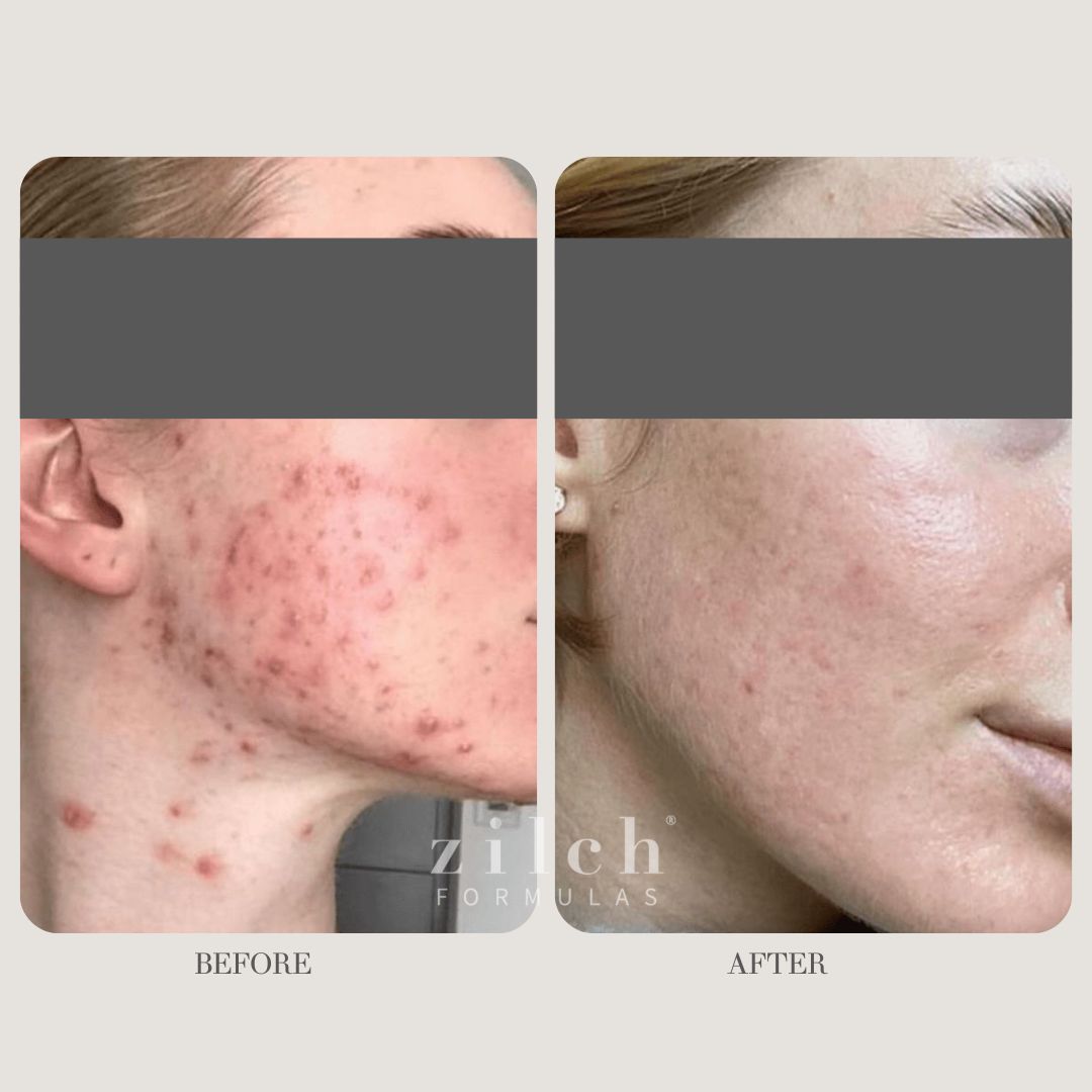 "I had acne on my cheeks and all around my mouth and jawline. Nothing I had tried for the past 3 years had worked. I found Zilch on inst...agram and did a lot of research and saw their amazing results and decided to try them for myself. Not even a week later and my skin was already clearing up. Fast forward a few weeks and my skin was less red, less inflamed and I had no new acne appearing. Just over a month and my acne had completely cleared! With no side effects and after 4 years of painful acne these were the only things that worked for me! They are a little expensive but they work and not only did they clear my skin but they helped my body too."
