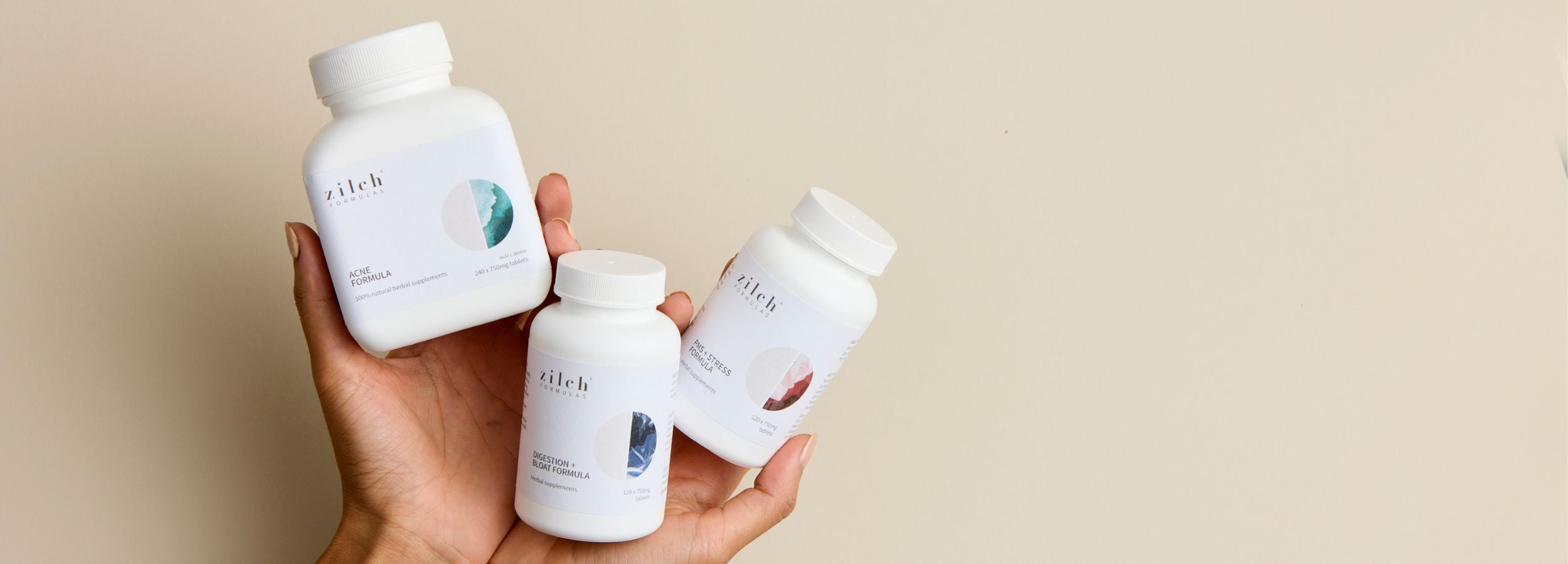 Zilch Ultimate Clear Skin From Within Set is suitable for those who find their acne is not one dimensional and is affected by both their hormones and their gut.